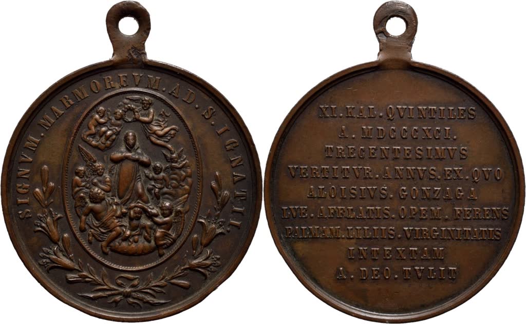 Lotto 1179 | RELIGIOSE - Medaglia - 1891 - 300° della Morte di S. Luigi Gonzaga Ø: 41 mm. - (AE g. 32,5). SPL+