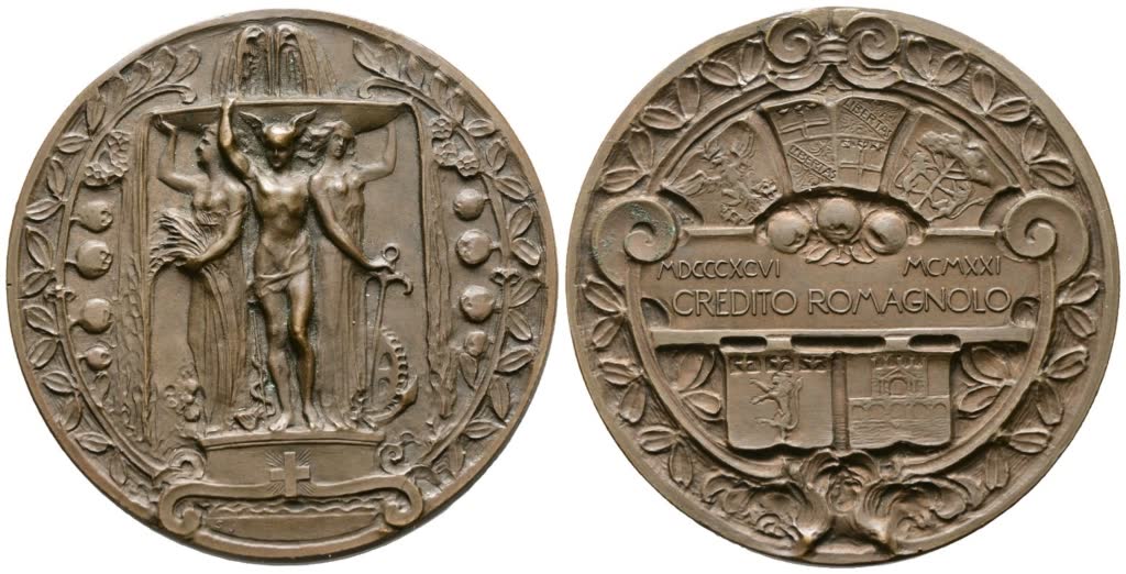 CREDITO ROMAGNOLO. Medaglia XXV Anniversario della Fondazione, 1921. AE 44 mm SPL