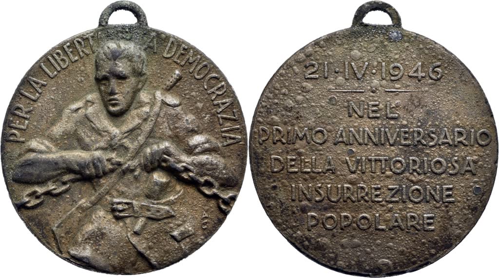 REPUBBLICA - Medaglia - 1946 - 1° Anniversario della Liberazione Ø: 33 mm. - (MI g. 14) R. BB+