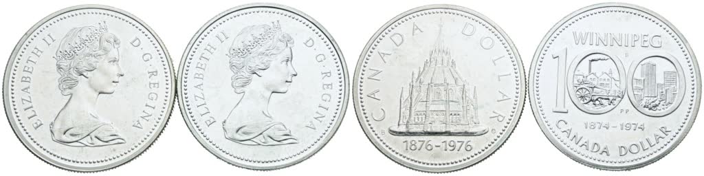 CANADA. Elisabetta II (1952-2022). Lotto di 2 monete da 1 dollaro 1974, 1976 Ag; FDC