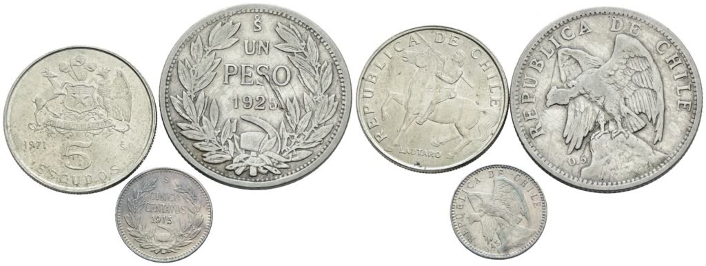 CILE. Lotto di 3 monete di cui 2 in argento. Nominali, date e conservazioni varie.