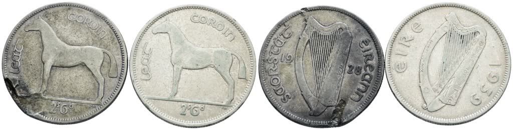 IRLANDA. Lotto di 2 monete da 1/2 corona 1928, 1939. Ag; Conservazioni varie.