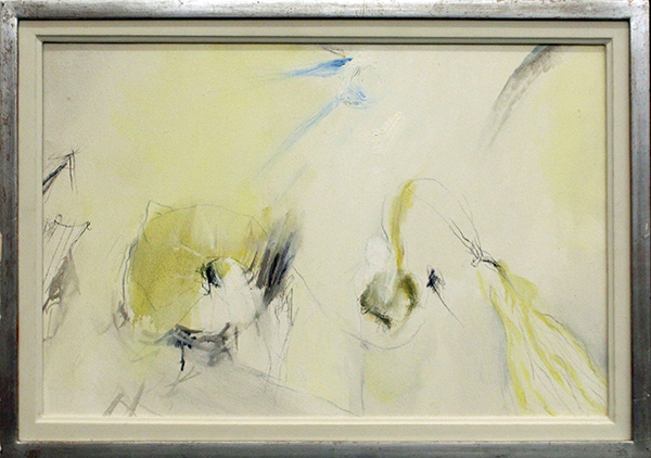 MARIO RACITI, "Mitologia", 1992, tecnica mista su tela, 40x60 cm, con cornice 48x68x3 kg, 1,50 kg. Al verso: firma, anno, titolo. Certificato di provenienza della Daliano Ribani Arte. Opera con cornice in omaggio.