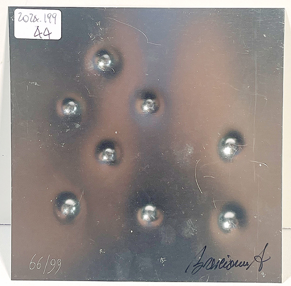 BRESCIANINI ANGELO, "Senza Titolo",Multiplo realizzato in alluminio cromato,cm 16x16, Tiratura realizzata in 99 esemplari, Firmato a mano dall'artista al retro, Numerazione incisa al retro. Edizione realizzata in esclusiva per la Minotauro Fine Art srl di Palazzolo sull'Oglio(BS). Autentica dell'artista su fotografia