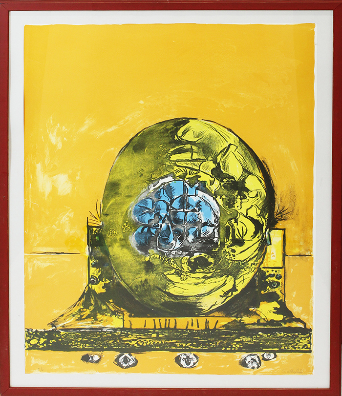GRAHAM VIVIAN SUTHERLAND, "Figura Surreale", anni '70, litografia su cartoncino, 70x50 cm, cm con cornice 79x59x2, peso 3,50 kg. Al fronte: firma in basso a destra, tiratura in basso sinistra, esemplare I/II. Opera con cornice. Presenta due piccoli strappi sul lato sinistro.