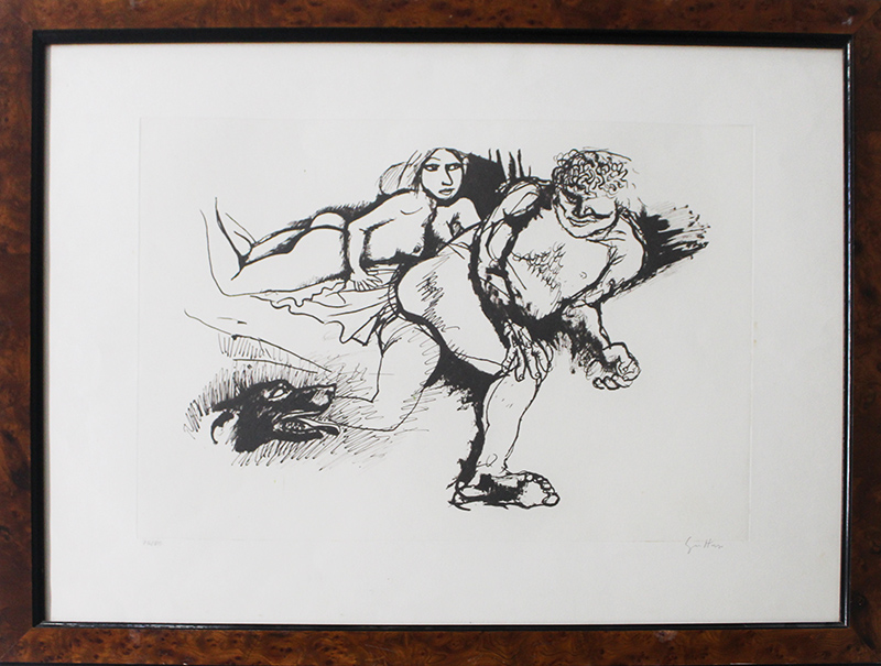 RENATO GUTTUSO, Litografia su cartoncino, Dim. 56x76. Al fronte: tiratura 75/80 in basso a sinistra, firma in basso a destra. Opera con cornice.