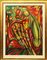 GIANBAR, "Carnevale di Ivrea", 1973, olio su tela intavolata, dim 70,5x53. Al fronte: firma al centro in basso. Al verso: timbro Galleria Accademia Torino nel centro ed etichetta galleria Accademia in basso a destra con informazioni. Opera con cornice.