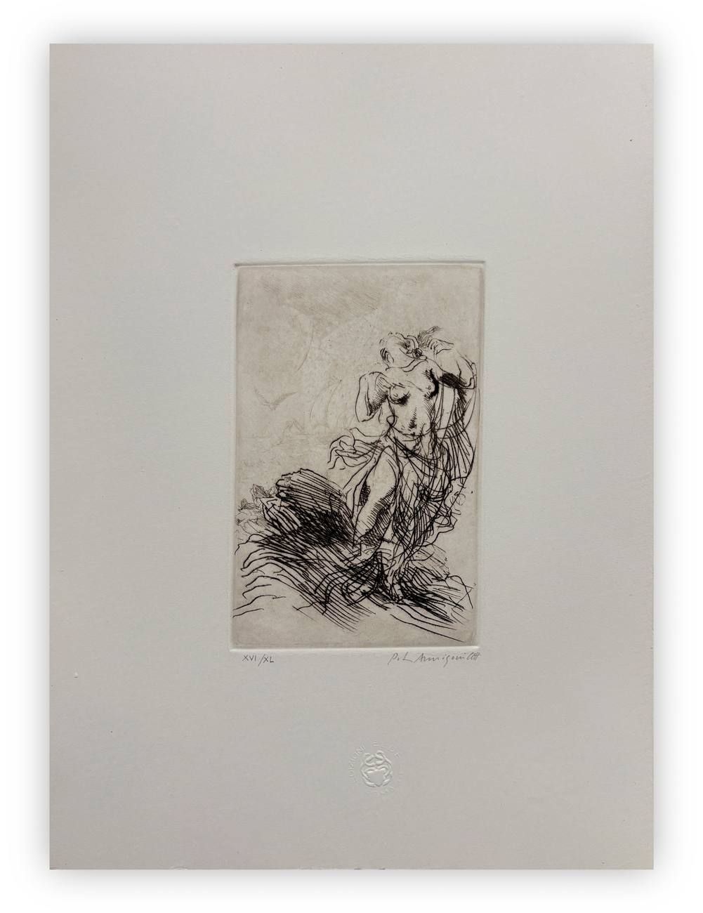Firma e numerazione (Esemplare XVI/L) a matita al fronte