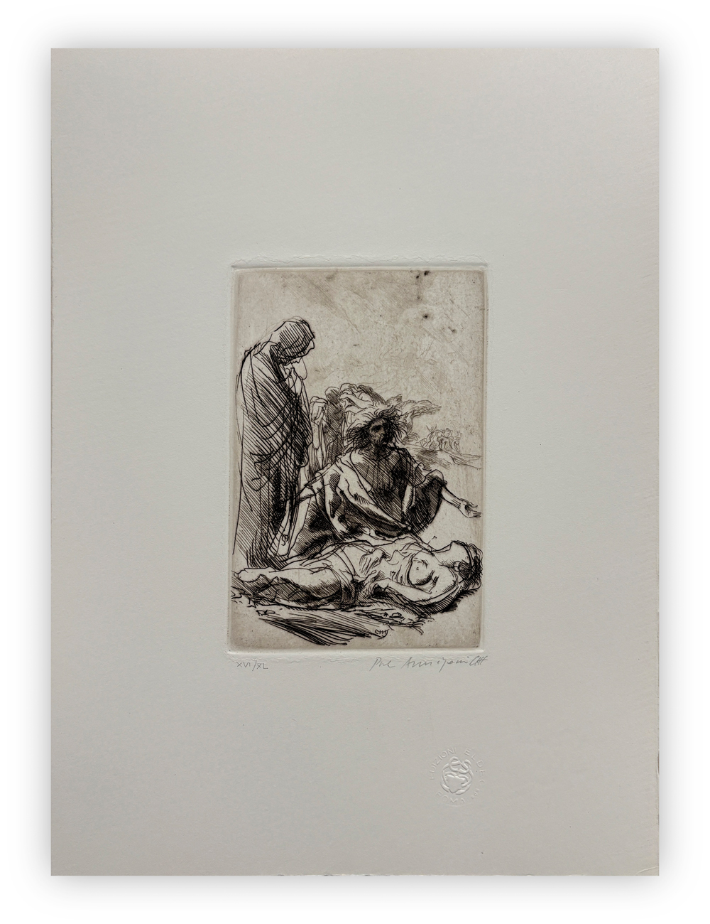 Firma e numerazione (Esemplare XVI/L) a matita al fronte