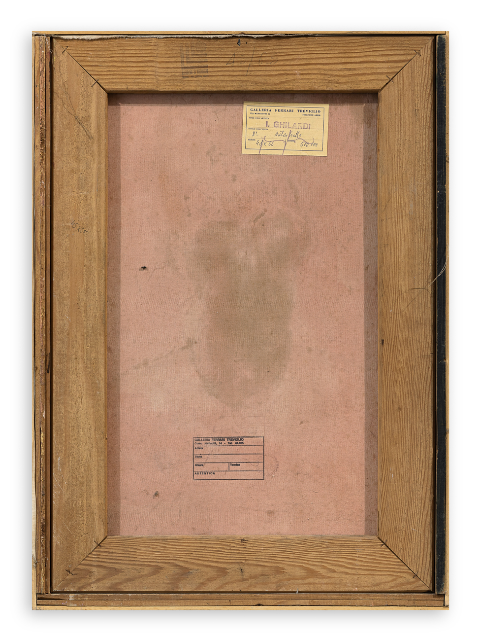 Etichetta e timbro della Galleria Ferrari (BG) al retro