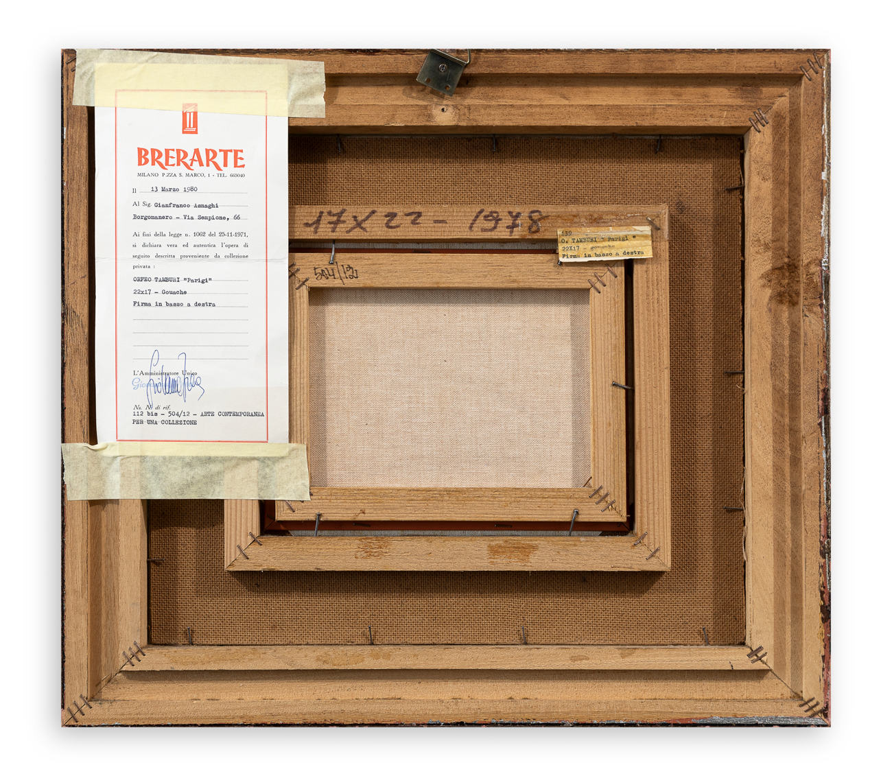 Certificato di autenticità a cura di Brerarte (MI) al retro