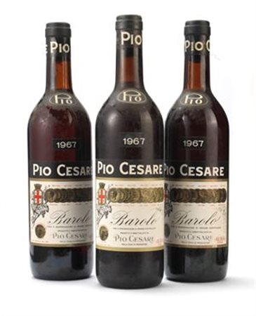 PIO CESARE Lotto di n. 3 bottiglie: Barolo 1967 Rosso lt. 0.75
