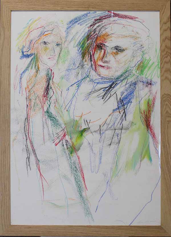 ERNESTO TRECCANI, "Fidanzati", 2001, Pasetlli colorati a cera su cartoncino, Dim. 100x70, Al fronte: frimata in basso a destra, Opera con cornice
