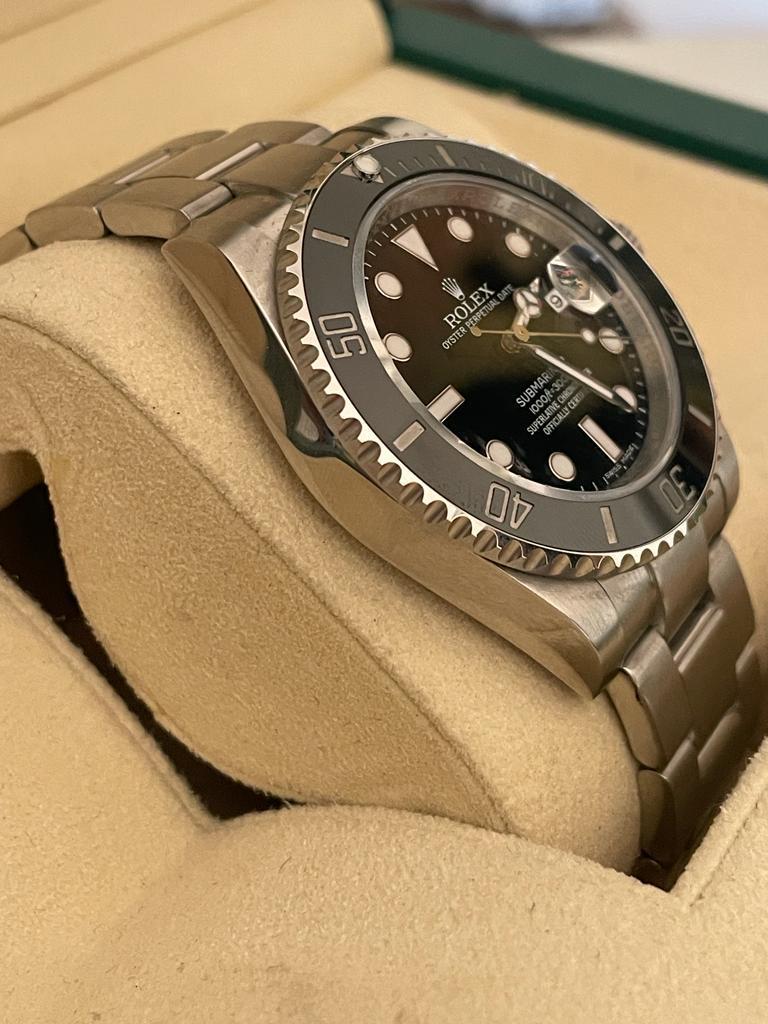 Marca Rolex Modello (Orologio) Submariner Date Numero di referenza 116610LN Carica Automatico Materiale della cassa Acciaio Materiale cinturino Acciaio Anno di produzione 2013( anno approssimativo) Condizione Ottimo (di seconda mano, segni di usura assenti o appena visibili) Corredo documenti originali Rolex, no box Carica Automatico Cassa Materiale della cassa Acciaio Diametro 40 mm Impermeabile 30 ATM Materiale lunetta Ceramica Vetro Vetro zaffiro Quadrante Nero Numeri sul quadrante Senza numeri Cinturino Materiale cinturino Acciaio Colore cinturino Acciaio Chiusura Déployante Materiale chiusura Acciaio Funzioni Data Altro Secondi centrali, Corona a vite - COMMISSIONE D’ASTA 25%