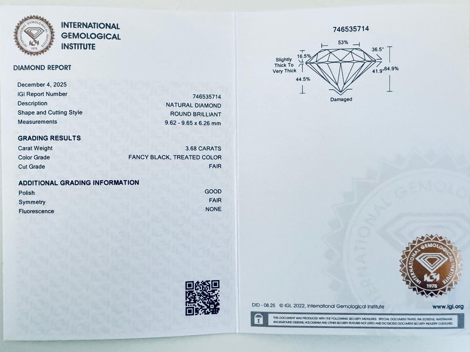 DIAMANTE NATURAL POLISHED FANCY BLACK 3,68 CT – CERTIFICATO IGI - BD02 - COMMISSIONE D’ASTA 25%