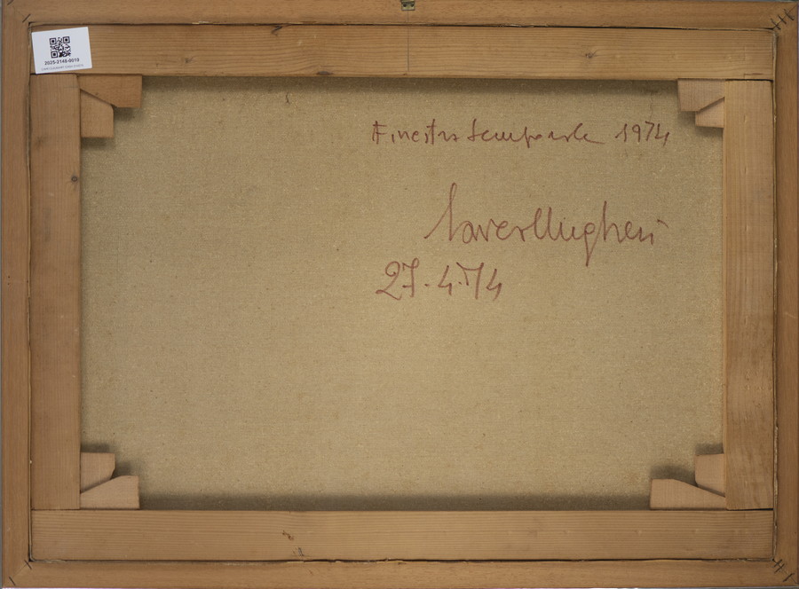 UNGHERI SAVERIO (1926 - 2013) FINESTRA TEMPORALE. 1974. Olio su tela. Cm 70,00 x 50,00. firma e data