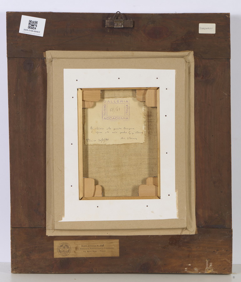 Sul retro: etichetta di provenienza Galleria Accademia, Torino con dichiarazione di autenticità firmata dal figlio Chessa Mauro