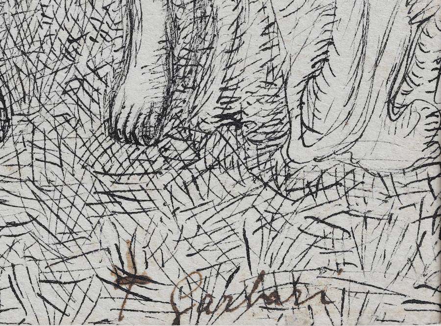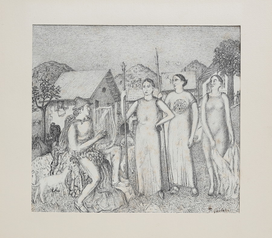 GARBARI TULLIO (1892 - 1931) IL POMO DELLA DISCORDIA. China su carta. Cm 24,00 x 21,50. firma