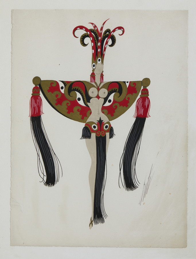 ERTE' (ROMAIN DE TIRTOFF) (1892 - 1990) NOUVELLE CALEDONIE . Tempera su carta. Cm 27,00 x 36,00. firma