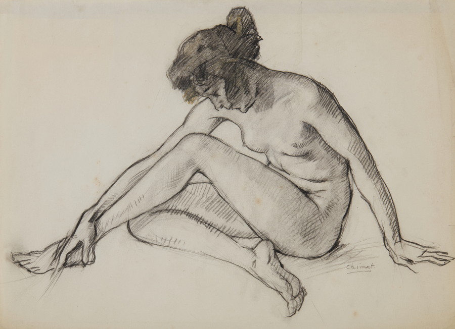 CHIMOT ÉDOUARD (1880 - 1959) SENZA TITOLO. Disegno a carboncino su carta. Cm 34,00 x 25,00. firma