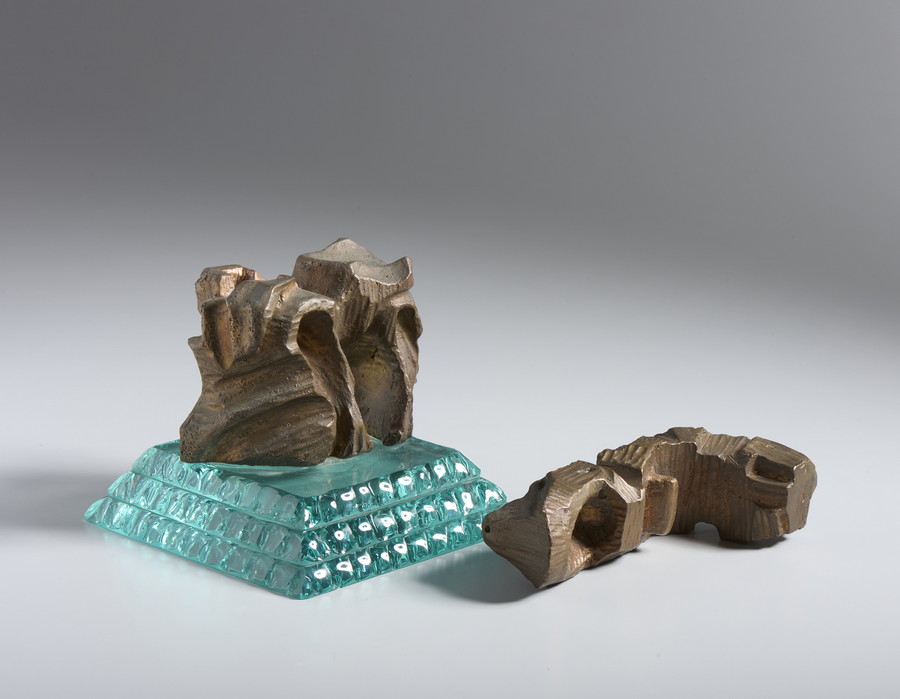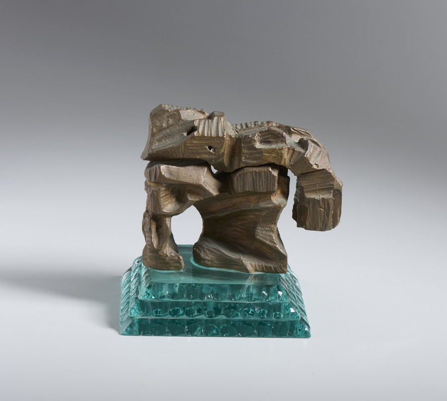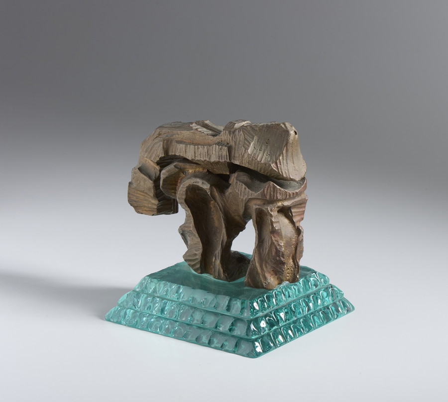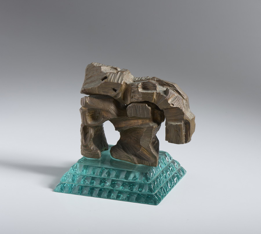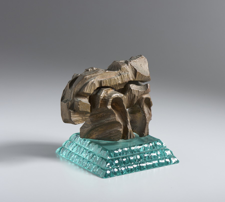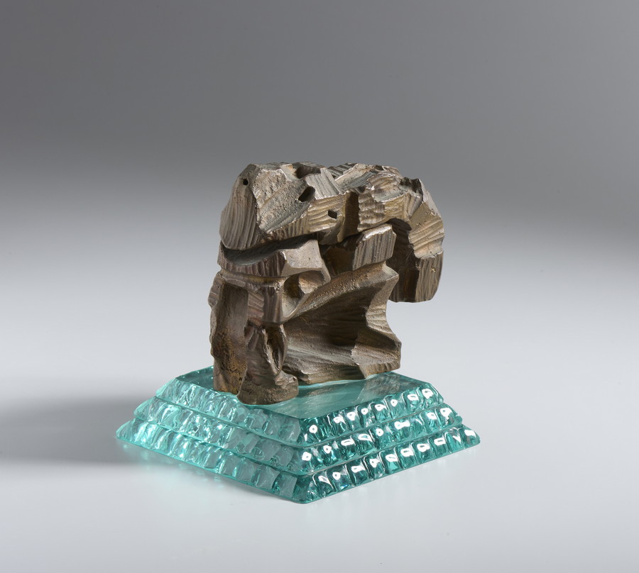 AUTORE NON IDENTIFICATO SENZA TITOLO. Vetro e bronzo.. Cm 20,50 x 20,50 x 18,00. misure senza base: 16,5x19x6cm
