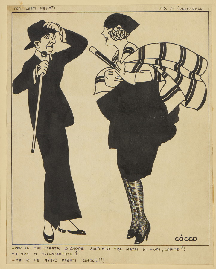 AUTORE NON IDENTIFICATO FRA CERTI ARTISTI . China su carta applicata su cartoncino. Cm 23,00 x 29,00. iscrizione: Dis. Coconcelli , titolo e firmato Còcco