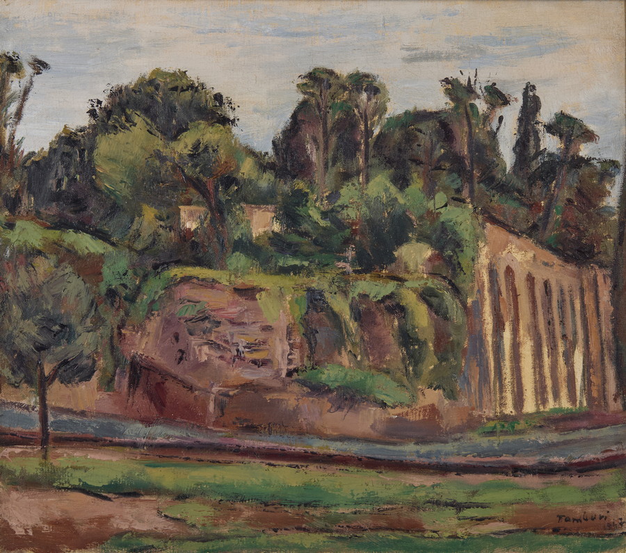 TAMBURI ORFEO (1910 - 1994) VEDUTA DI ROMA. 1947. Olio su tela. Cm 40,00 x 35,00. firma e data