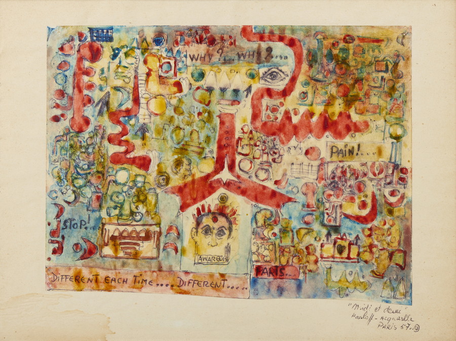 HARLOFF GUY (1933 - 1991) MIDI ET DEMI . 1957. tecnica mista su carta. Cm 21,00 x 15,50. firma, data e titolo