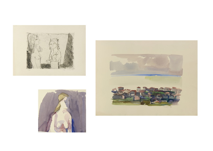 Lo STUDIO DI FIGURA, 1970 (circa) e il PAESAGGIO, 1969 sono accompagnate da autentica dell'artista su fotografia