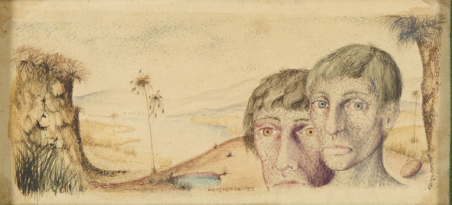 MACCIOTTA GIOVANNI (1927 - 1993) LOTTO COMPOSTO DA N.2 OPERE . 1962. tecnica mista. . DUE FIGURE NEL PAESAGGIO, 1953