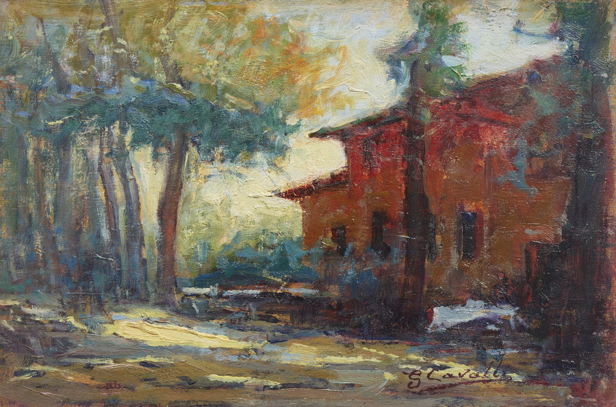 CAVALLI EMANUELE (1904 - 1981) SENZA TITOLO. 1928. Olio su tavola. Cm 26,00 x 17,50. firma