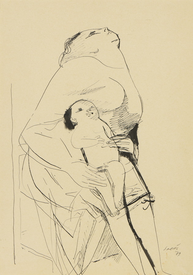 SAETTI BRUNO (1902 - 1984) MATERNITA'. 1979. China su carta. Cm 35,00 x 49,70. firma e data