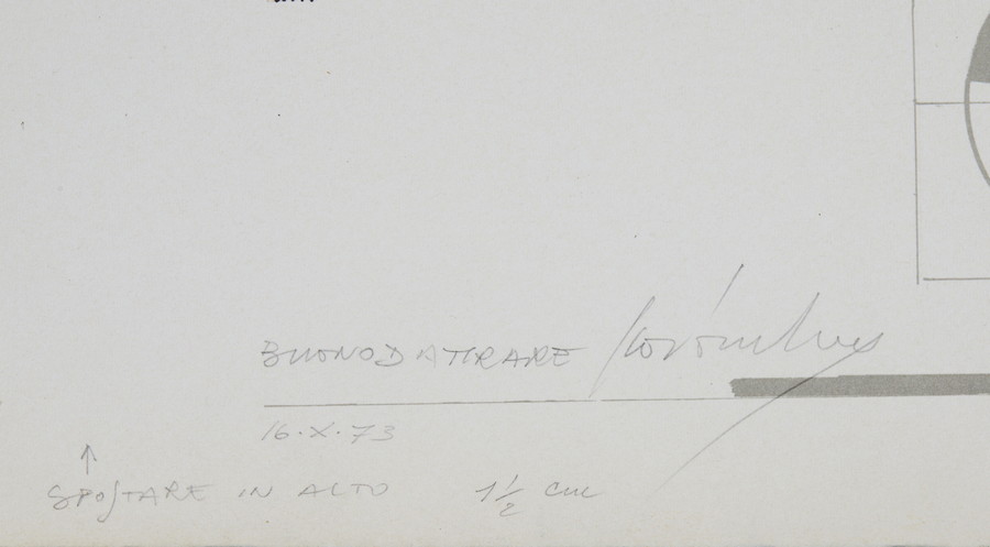 AUTORE NON IDENTIFICATO *SENZA TITOLO ( PROGETTO). Intervento su litografia.. Cm 62,50 x 47,50. firma