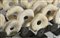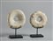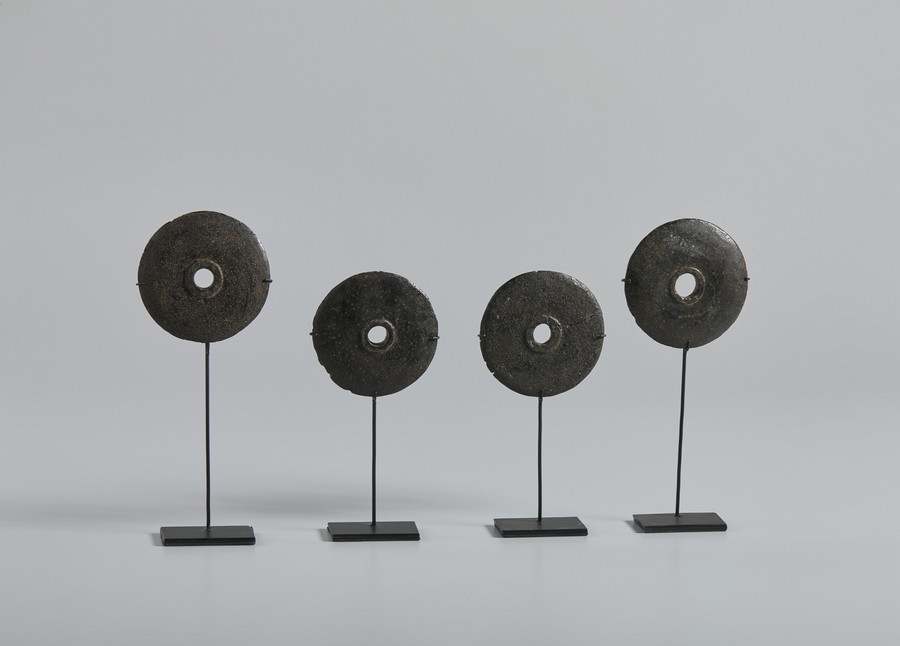 AUTORE NON IDENTIFICATO *LOTTO COMPOSTO DA N. 15 DISCHI IN PIETRA OLLARE E N.4 DISCHI IN PIETRA. Pietra e pietra ollare su supporto in ferro. . misura scultura in pietra ollare: 23cm