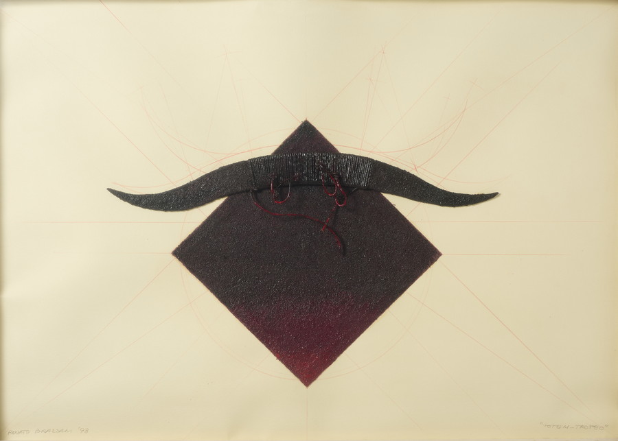 BRAZZANI RENATO (n. 1940) TOTEM-TROFEO. 1998. tecnica mista su cartoncino. Cm 99,00 x 70,00. firma, data e titolo