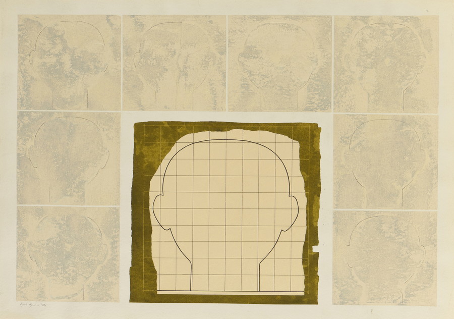 CAGNONE ANGELO (n. 1941) TESTE. 1974. tecnica mista su carta. Cm 70,00 x 50,00. firma e data