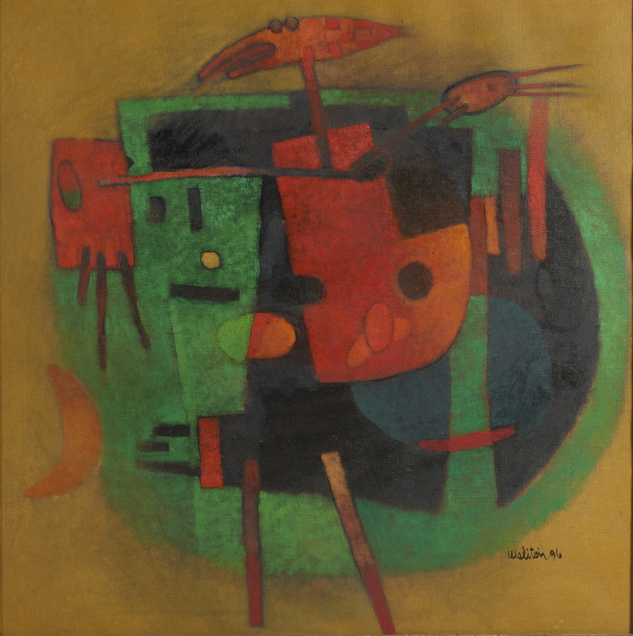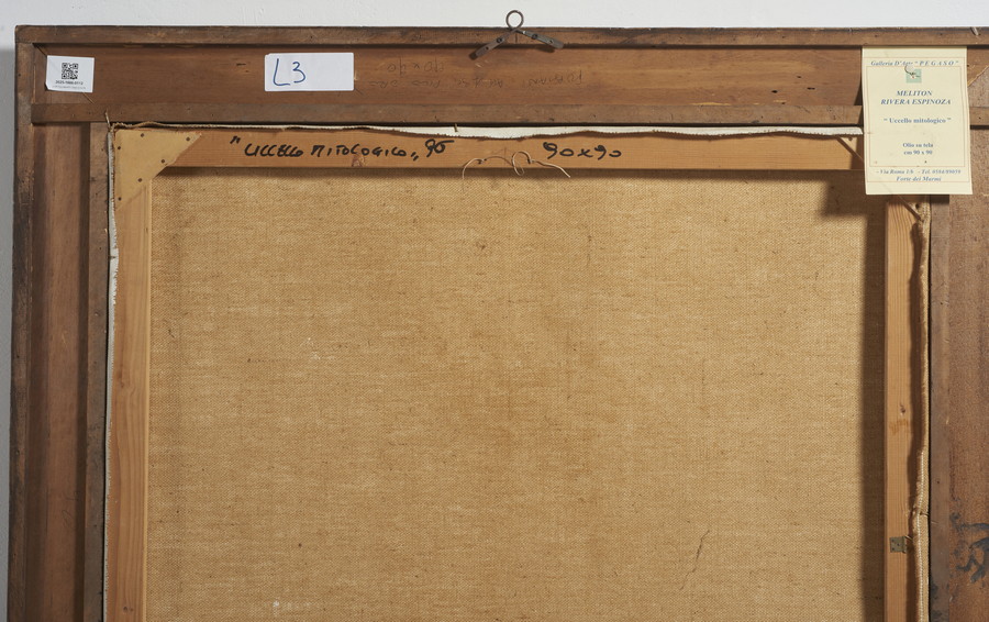 RIVERA ESPINOZA MELITON (n. 1944) *UCCELLO MITOLOGICO. 1996. Olio su tela. Cm 90,00 x 90,00. firma e data
