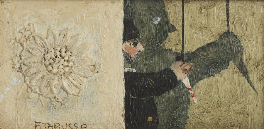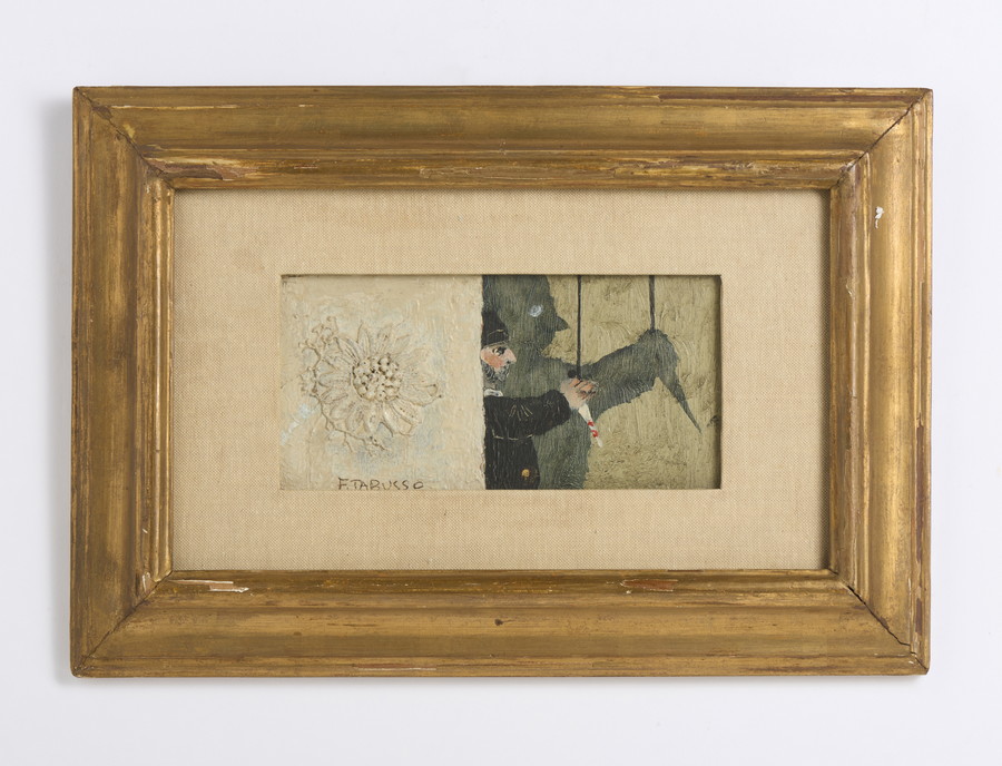 TABUSSO FRANCESCO (1930 - 2012) SENZA TITOLO. tecnica mista su tavola. Cm 20,00 x 10,30. firma . Cornice presente