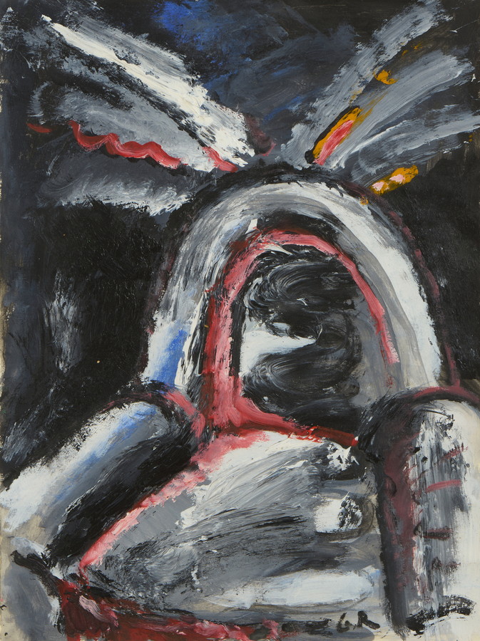 RAGUSA GIOVANNI (n. 1941) SENZA TITOLO. Olio su carta. Cm 22,50 x 30,00. monogramma . Cornice presente