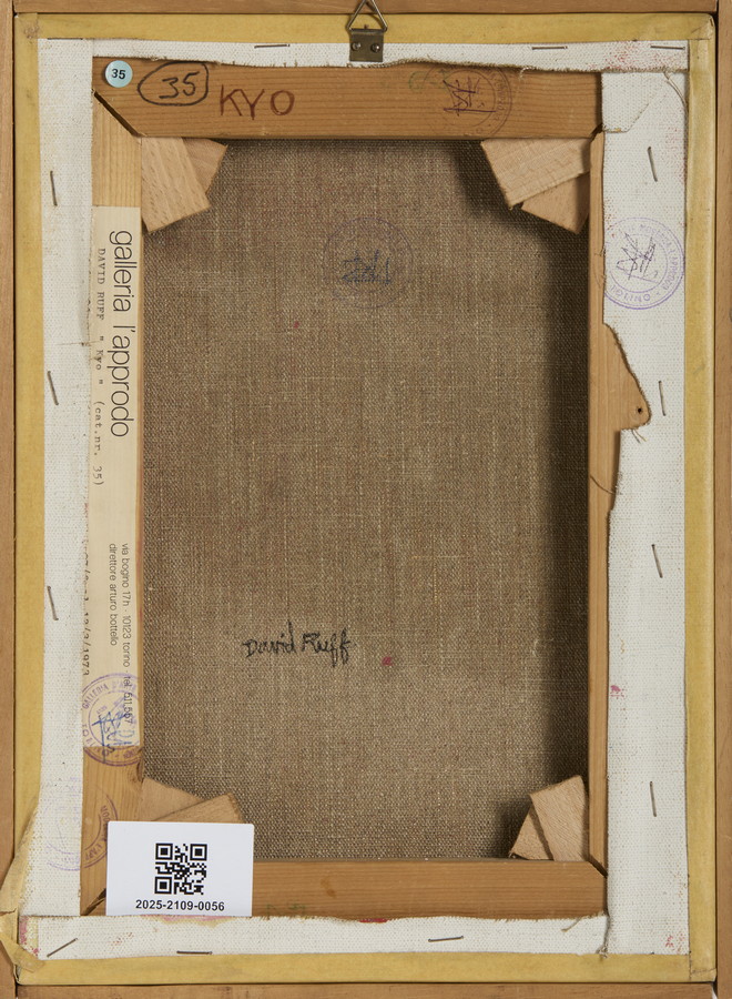 RUFF DAVID (1925 - 2007) SENZA TITOLO . Olio su tela. Cm 25,00 x 35,00. sul retro: firma, timbro ed etichetta Galleria L'Approdo, Torino