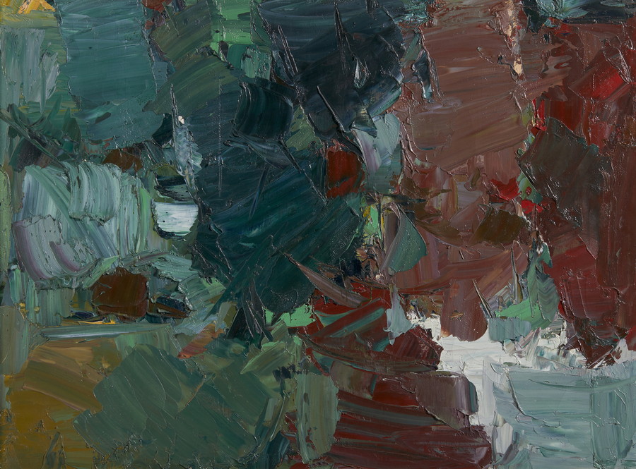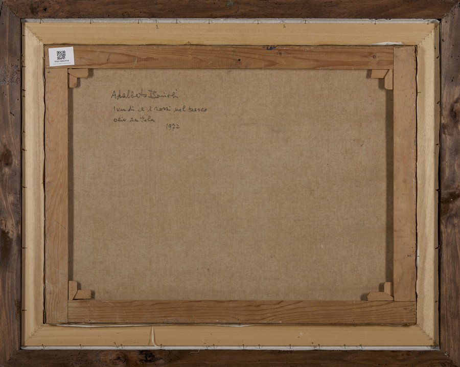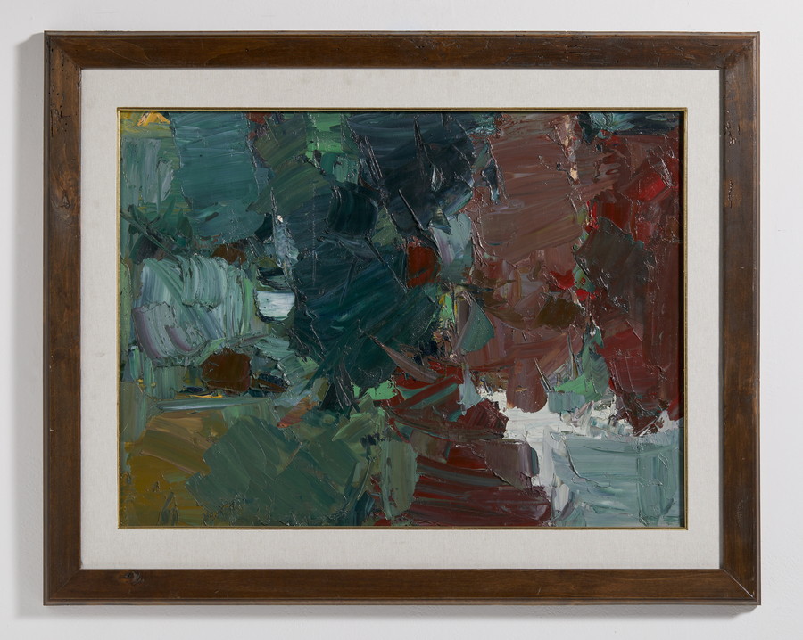 BORIOLI ADALBERTO (n. 1936) *I VERDI E I ROSSI NEL BOSCO . 1972. Olio su tela. Cm 80,00 x 60,00. sul retro: firma, titolo e data
