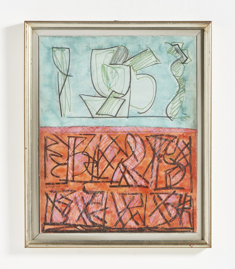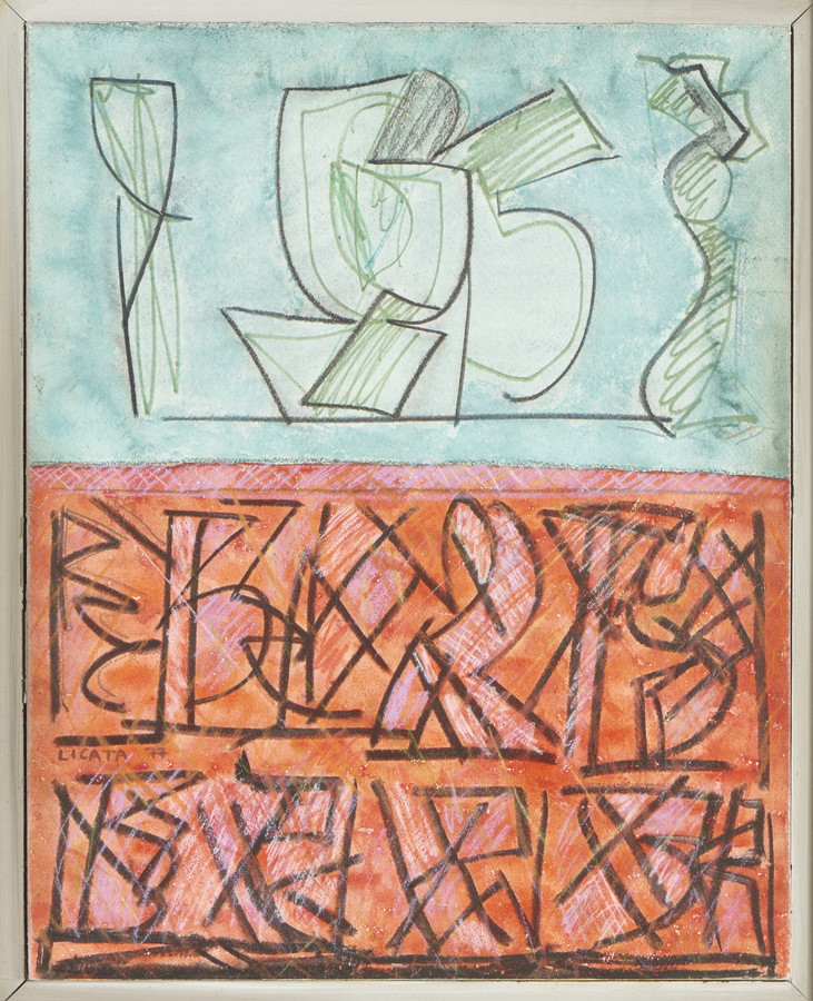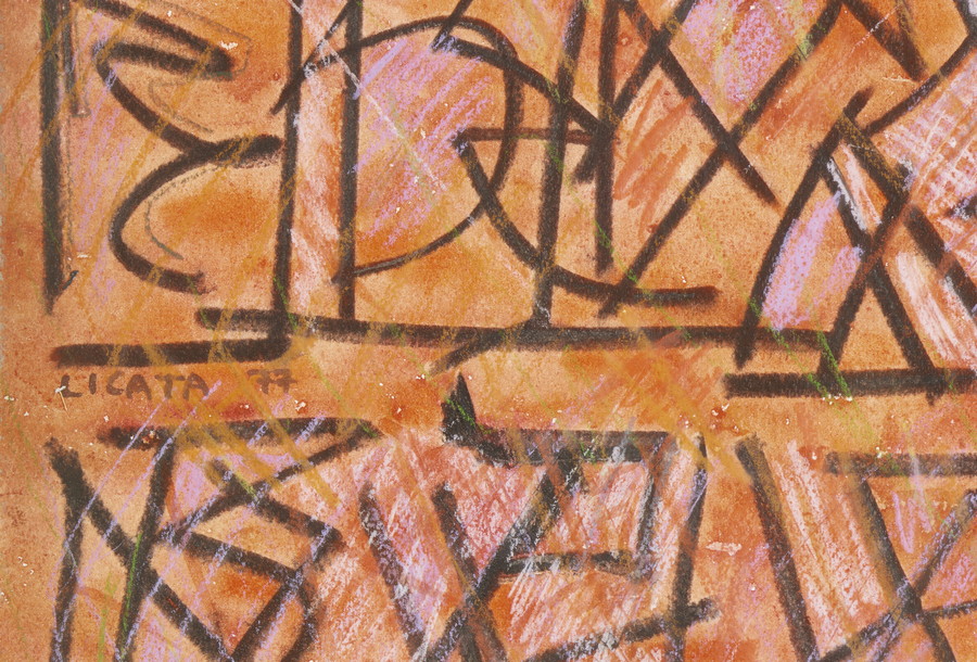 LICATA RICCARDO (1929 - 2014) SENZA TITOLO. 1977. Tecnica mista su carta su tavola. Cm 32,00 x 40,50. firma e data
