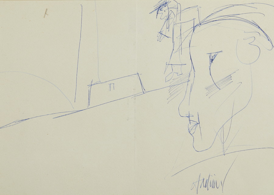 TADINI EMILIO (1927 - 2002) SENZA TITOLO. Biro su cartoncino. Cm 29,50 x 21,00. firma