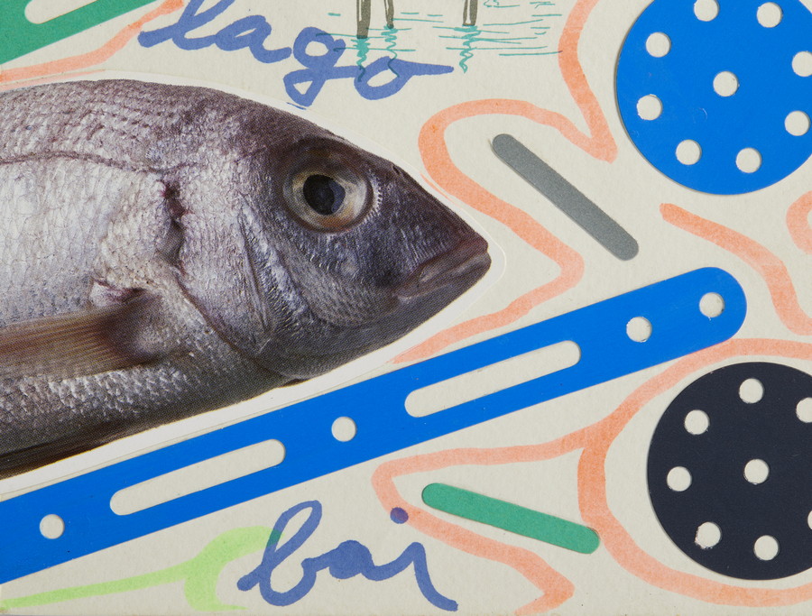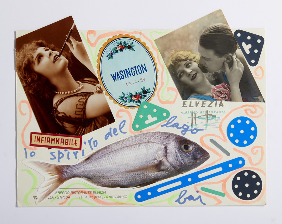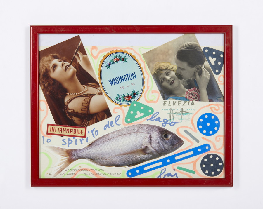 BAJ ENRICO (1924 - 2003) LO SPIRITO DEL LAGO . 1999. Pennarello e collage su cartoncino. Cm 29,50 x 21,00. firma, data e titolo