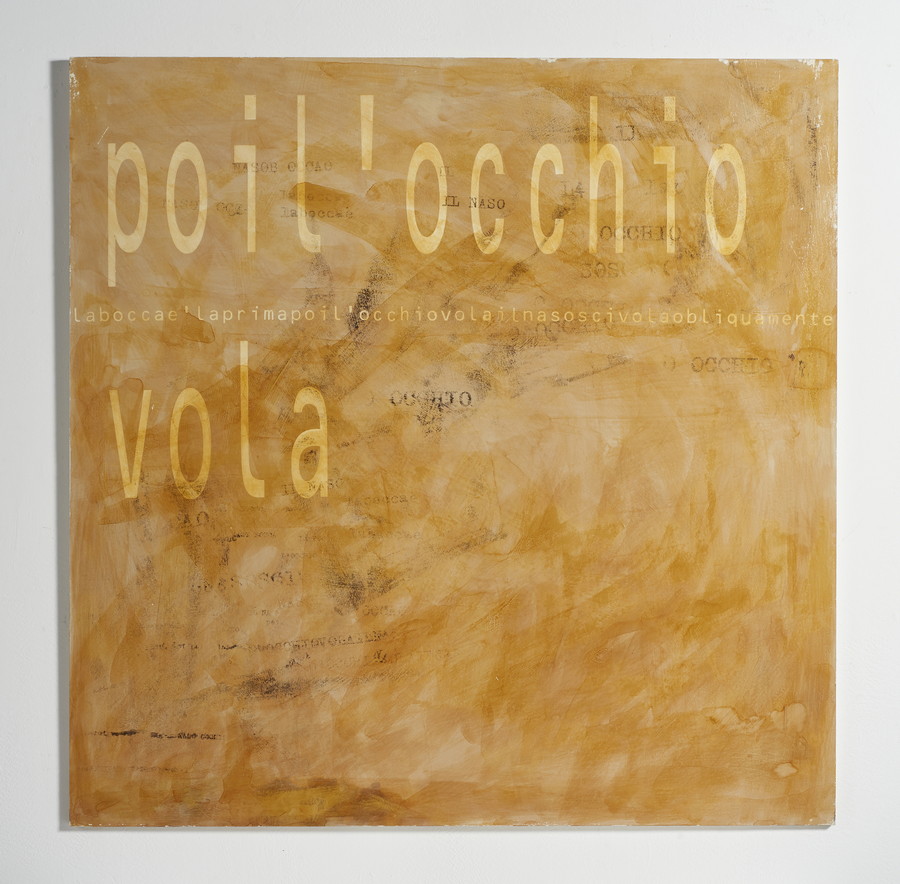 AUTORE NON IDENTIFICATO *SCOMPOSIZIONE . 2003. tecnica mista su carta applicata su compensato. Cm 100,00 x 100,00. sul retro: firma, titolo e data