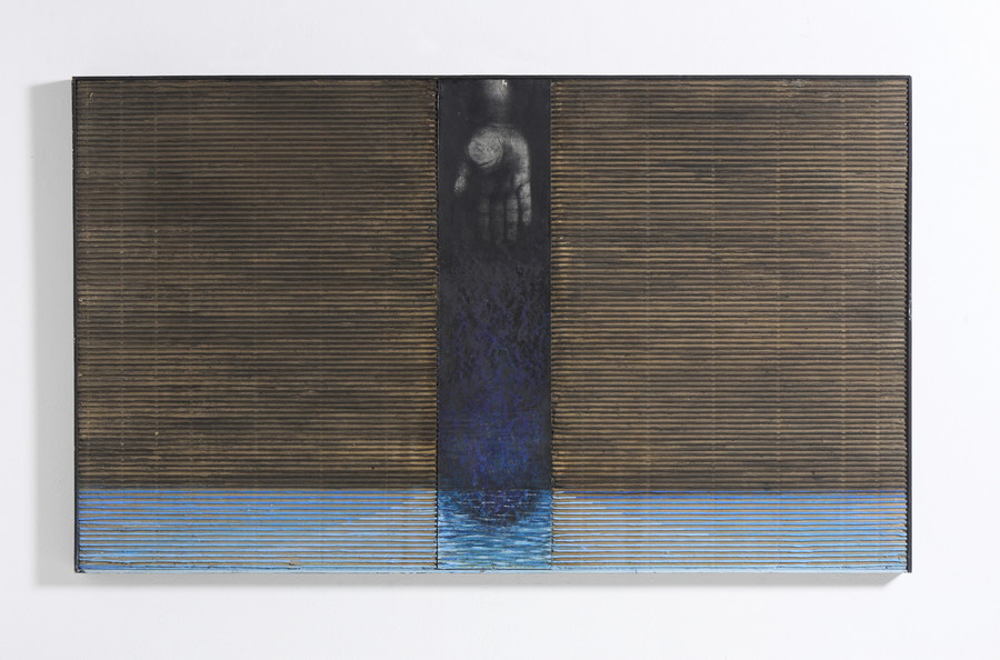DE LUCA SANTOLO (n. 1960) SENZA TITOLO. 1990. Tecnica mista su plastica. Cm 120,00 x 70,00. sul retro: firma e data