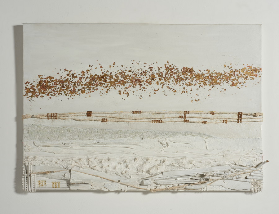 MARELLA MATTEO (n. 1972) *ESSENZA DI ORIZZONTE IN BIANCO E ORO . 2010. Tecnica mista su tela. Cm 100,00 x 70,00. sul retro: firma e data
