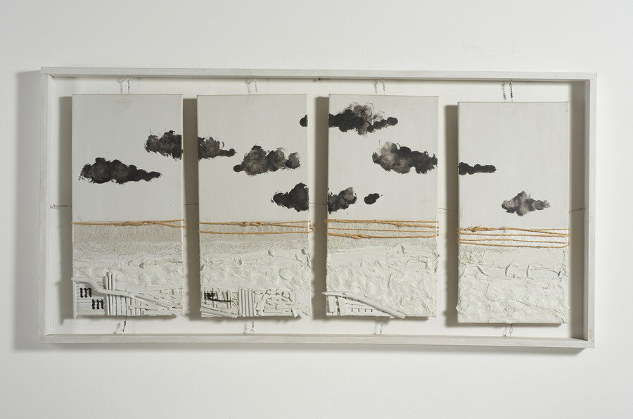 MARELLA MATTEO (n. 1972) *ESSENZA DI ORIZZONTE IN BIANCO E NERO. 2011. Tecnica mista su tela. Cm 134,00 x 60,00. sul retro: firma e data