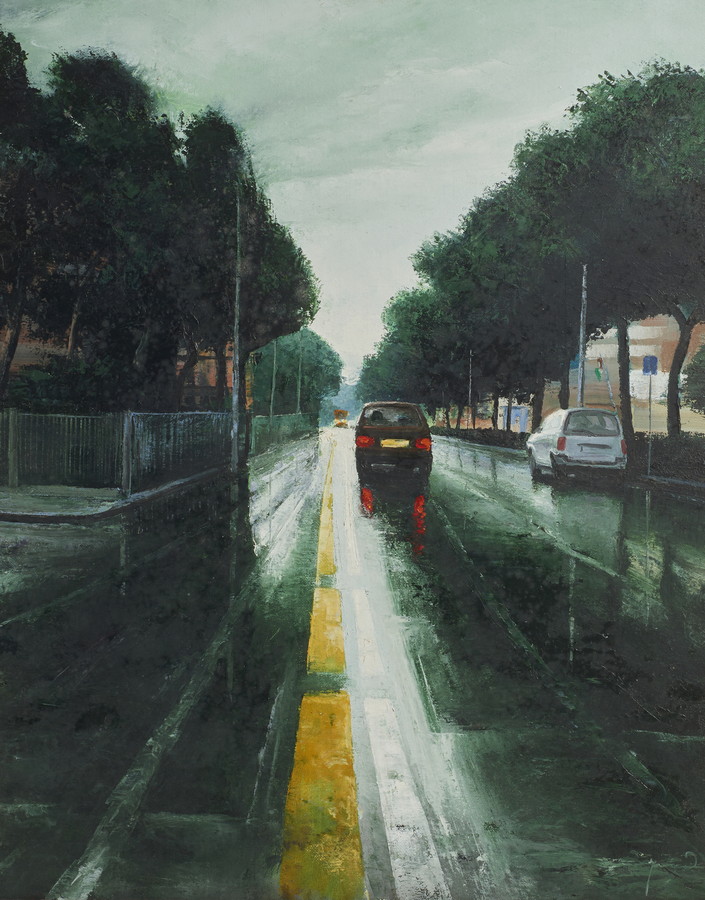 FRISONI DAVIDE (n. 1965) *LUCE NEL VERDE . Olio su tela. Cm 80,00 x 100,00. firma