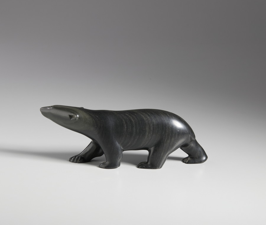 KAVIK SIMEONIE (n. 1966) WALKING BEAR. pietra. Cm 25,00 x 8,50 x 4,00. firma incisa ed etichetta Canada